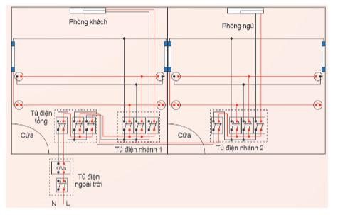 Luyện tập trang 40 Công nghệ 12: Vẽ và mô tả cấu trúc chung hệ thống điện gia đình có 1 phòng khách, 2 phòng ngủ, 1 phòng bếp và 1 phòng vệ sinh.