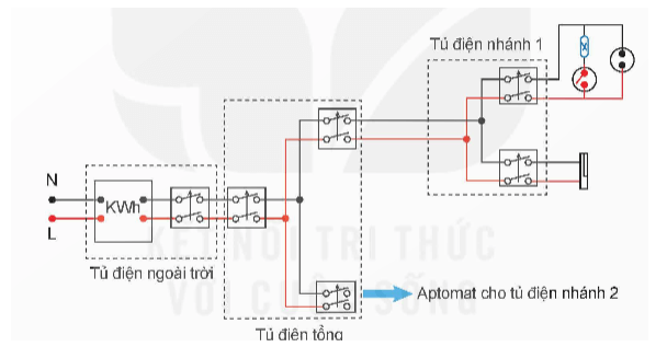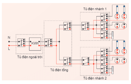 Thứ tự kết nối các thành phần, thiết bị trong hệ thống điện gia đình từ nguồn điện đến tải tiêu thụ: