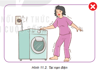 - Giải thích: Tuy rằng dây điện đã được cắm và máy giặt đang hoạt động nhưng dây điện an toàn, không bị hở và máy giặt không phải vật dẫn điện