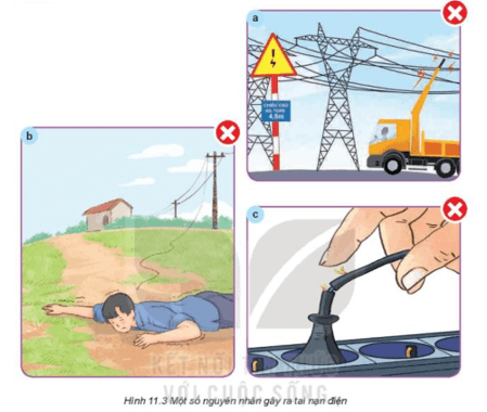 Khám phá trang 61 Công nghệ 8: Quan sát Hình 11.3 và cho biết các nguyên nhân gây ra tai nạn điện.