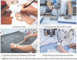 Hãy mô tả các nhiệm vụ của người lao động ngành nghề liên quan đến cắt may thời trang minh họa trong Hình 4.5.