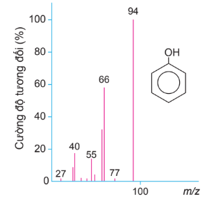 Ví dụ: Phổ MS của phenol, xác định được ion phân tử [M+] có giá trị m/z bằng 94, chứng tỏ phenol có phân tử khối bằng 94.