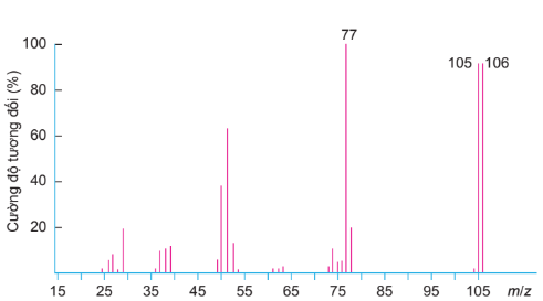Từ phổ khối lượng của benzaldehyde, ta có Mbenzaldehyde = 106. Vậy: