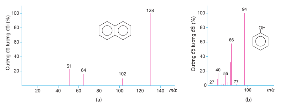 Phổ khối lượng naphatalene a) và phenol b)