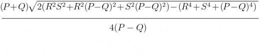 Tuy nhiên nếu bài toán cho thêm vài dữ kiện ví dụ như tính diện tích hình thang khi biết độ dài 4 cạnh và có nõi rõ cạnh đáy là cạnh nào thì có thể tính được diện tích hình thang, ví dụ chúng tao có các cạnh đấy Q P, trong đó cạnh đáy P dài hơn và 2 cạnh bên R và S.