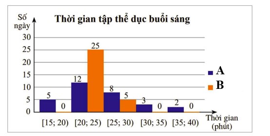 Ví dụ: Cho biểu đồ thống kê thời gian tập thể dục buổi sáng của hai người A và B