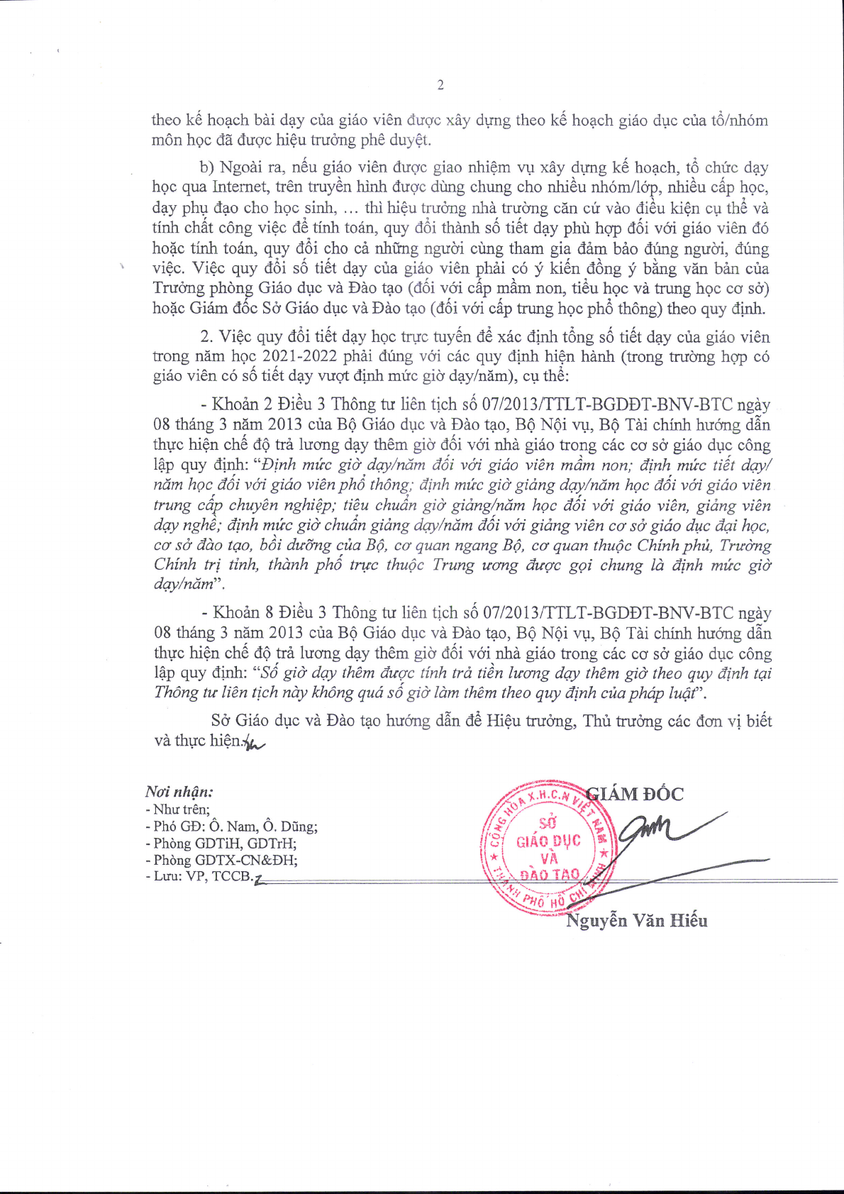 Ngày 13/10/2021 Sở giáo dục và đào tạo TP Hồ Chí Minh đã có Công văn số 2749/SGDĐT-TCCB về việc hướng dẫn chế độ làm việc đối với giáo viên trong thời gian phòng chống dịch Covid19 năm học 2021-2022. Mời các bạn tham khảo nội dung chi tiết.