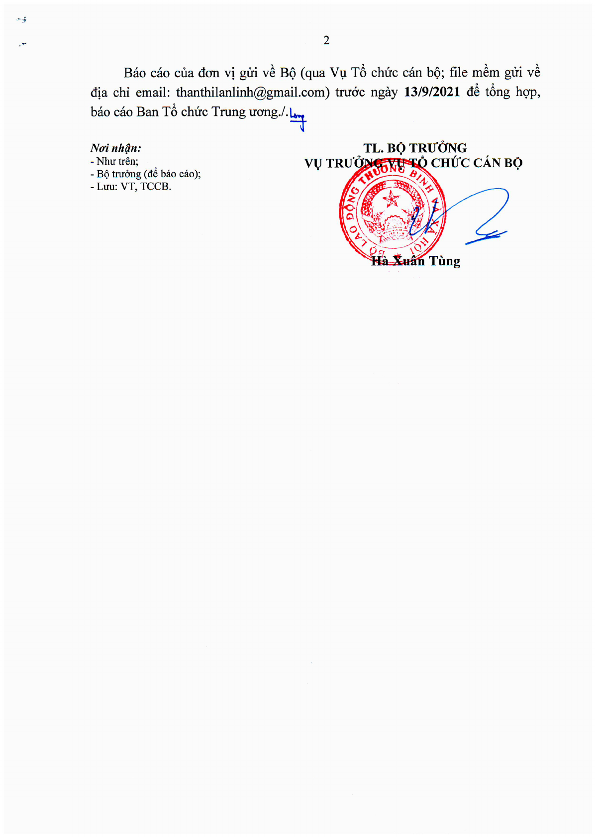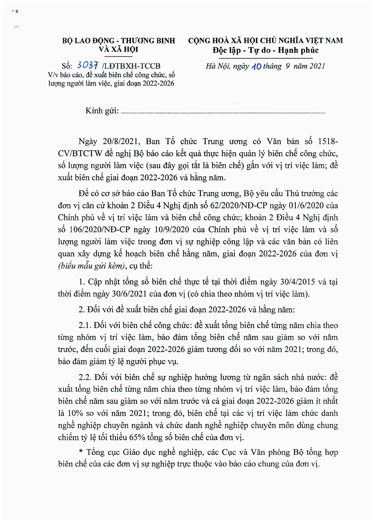 Công văn 3037/LĐTBXH-TCCB 2021