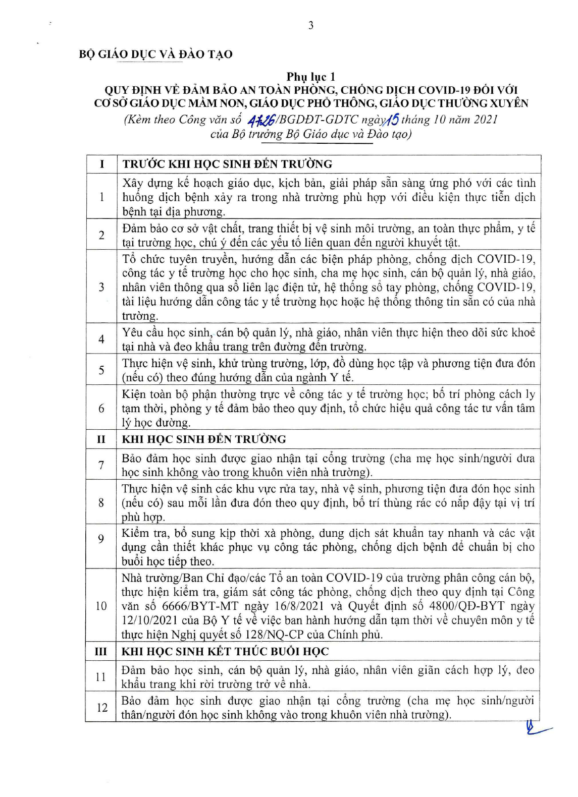Công văn 4726/BGDĐT-GDTC 2021 tổ chức dạy học trực tiếp tại các cơ sở giáo dục