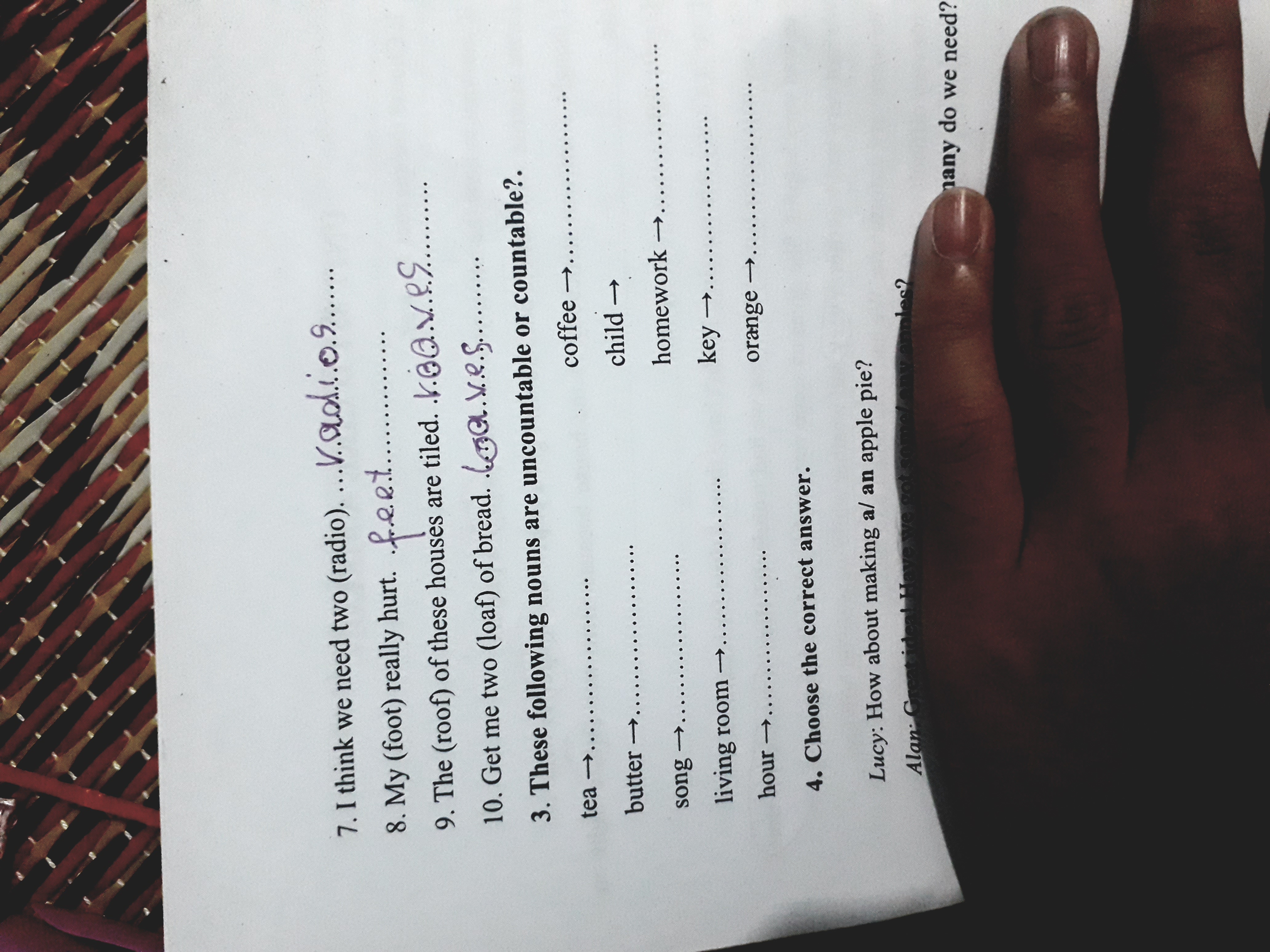 Bài tập danh từ đếm được và không đếm được