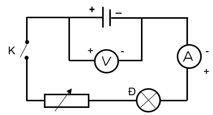 Chuẩn bị: một số nguồn điện (pin) 1,5 V; 3 V; 4,5 V; biến trở; ampe kế; vôn kế; bóng đèn 1,5 V; công tắc và dây nối.