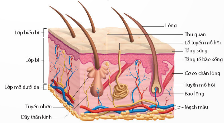 Da là lớp vỏ bọc bên ngoài cơ thể, được cấu tạo gồm lớp biểu bì, lớp bì và lớp mỡ dưới da.