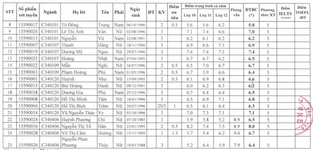 Danh sách những thí sinh đầu tiên trúng tuyển