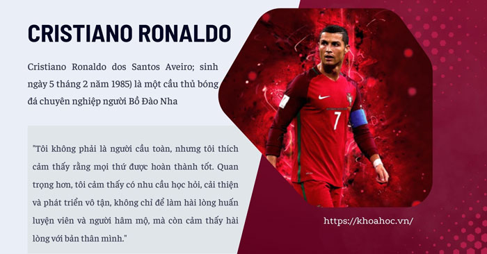 Với nghị lực phi thường, cùng niềm đam mê mãnh liệt với bóng đá, chân sút sinh năm 1985 đã vươn lên trở thành một trong những cầu thủ vĩ đại nhất thế giới. Giống như Messi, Ronaldo sở hữu bộ sưu tập danh hiệu vô cùng đồ sộ. Ngoài 5 Quả bóng vàng FIFA (2008, 2013, 2014, 2016, 2017), CR7 còn là cầu thủ xuất sắc nhất của FIFA năm 2008. Trong 2 năm liên tiếp 2016 và 2017, Ronaldo giành chiến thắng ở giải thưởng The Best FIFA Football Awards…