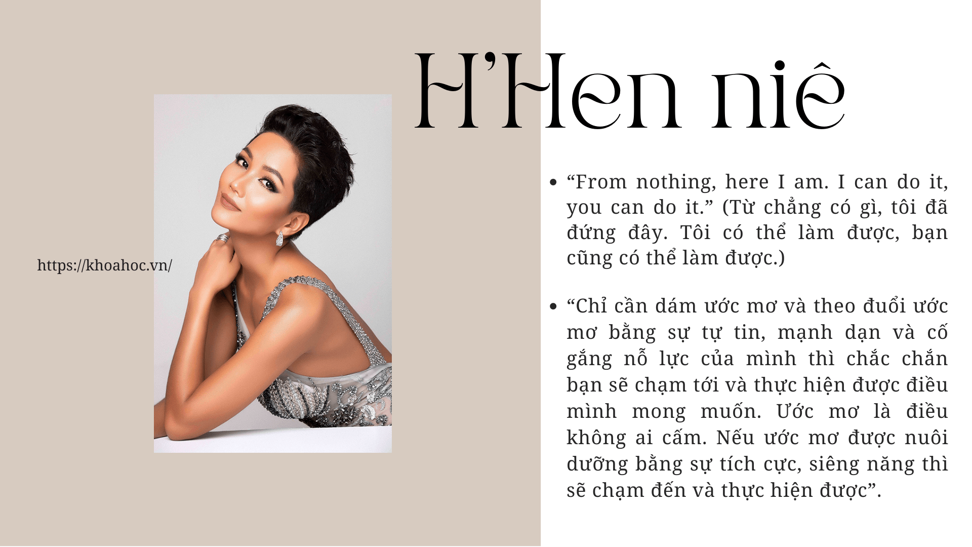 - H’Hen Niê sinh năm 1992, người dân tộc Ê-đê đến từ Đăk Lăk.