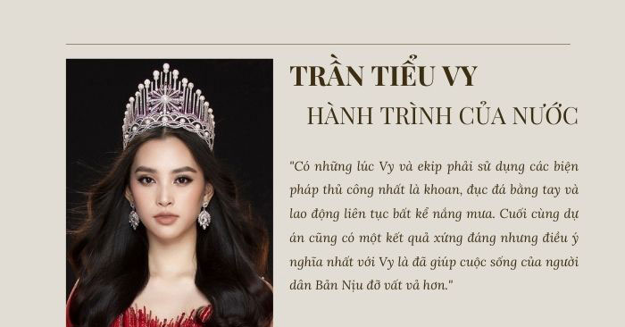 - Tiểu Vy chia sẻ, "Hành trình của nước" không chỉ là một dự án trong khuôn khổ Miss World mà sẽ trở thành một sứ mệnh, một hành trình thiện nguyện không bao giờ dừng lại của cô sau này.