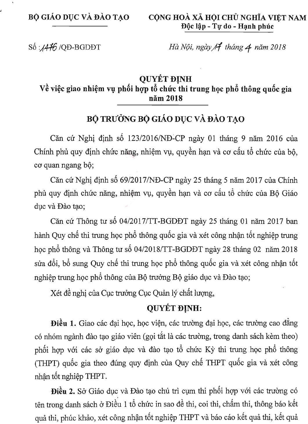 Bộ GD-ĐT vừa ký quyết định giao nhiệm vụ phối hợp tổ chức thi THPT quốc gia năm 2018. Theo đó trên cả nước năm 2018 có 63 cụm thi THPT Quốc gia, mời các bạn tham khảo nội dung chi tiết.