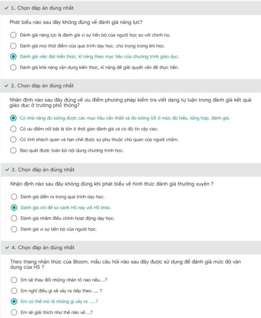Đáp án bài tập trắc nghiệm Module 3.0 (Dành cho GVCC)