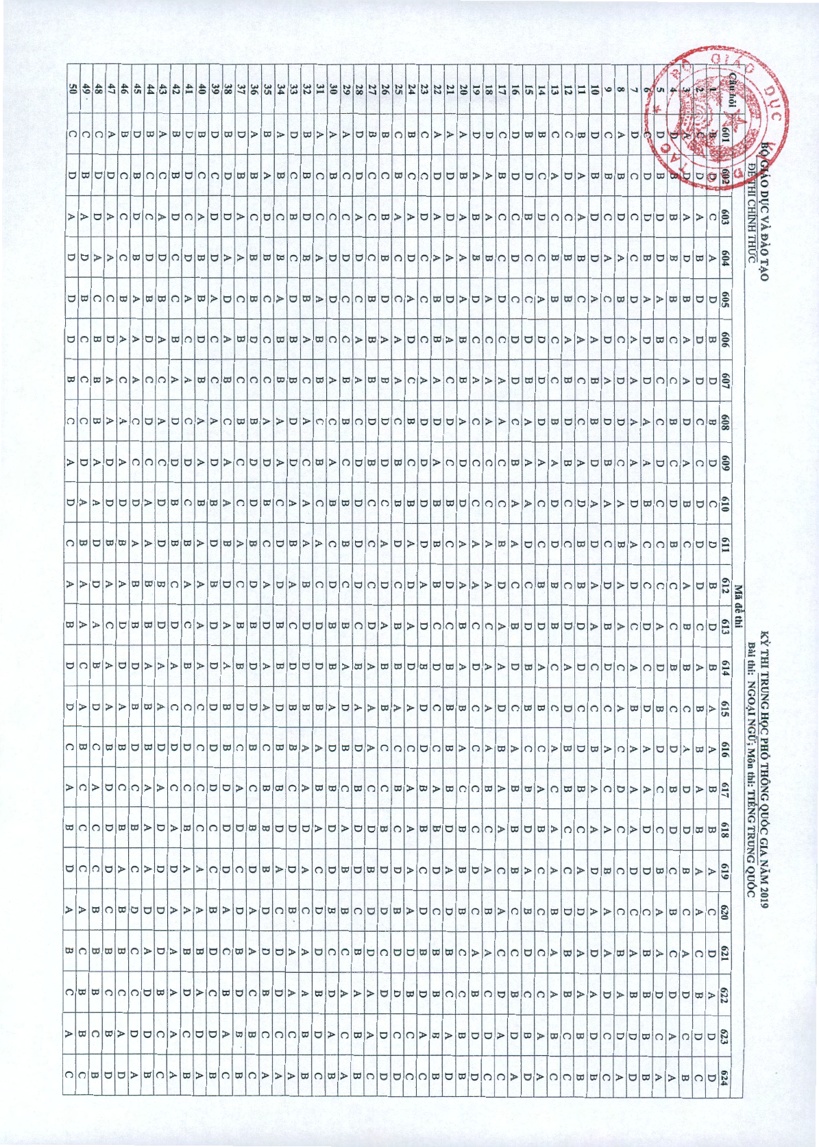 Đáp án đề thi THPT Quốc Gia môn tiếng Trung Quốc 2019 - Tất cả các mã đề