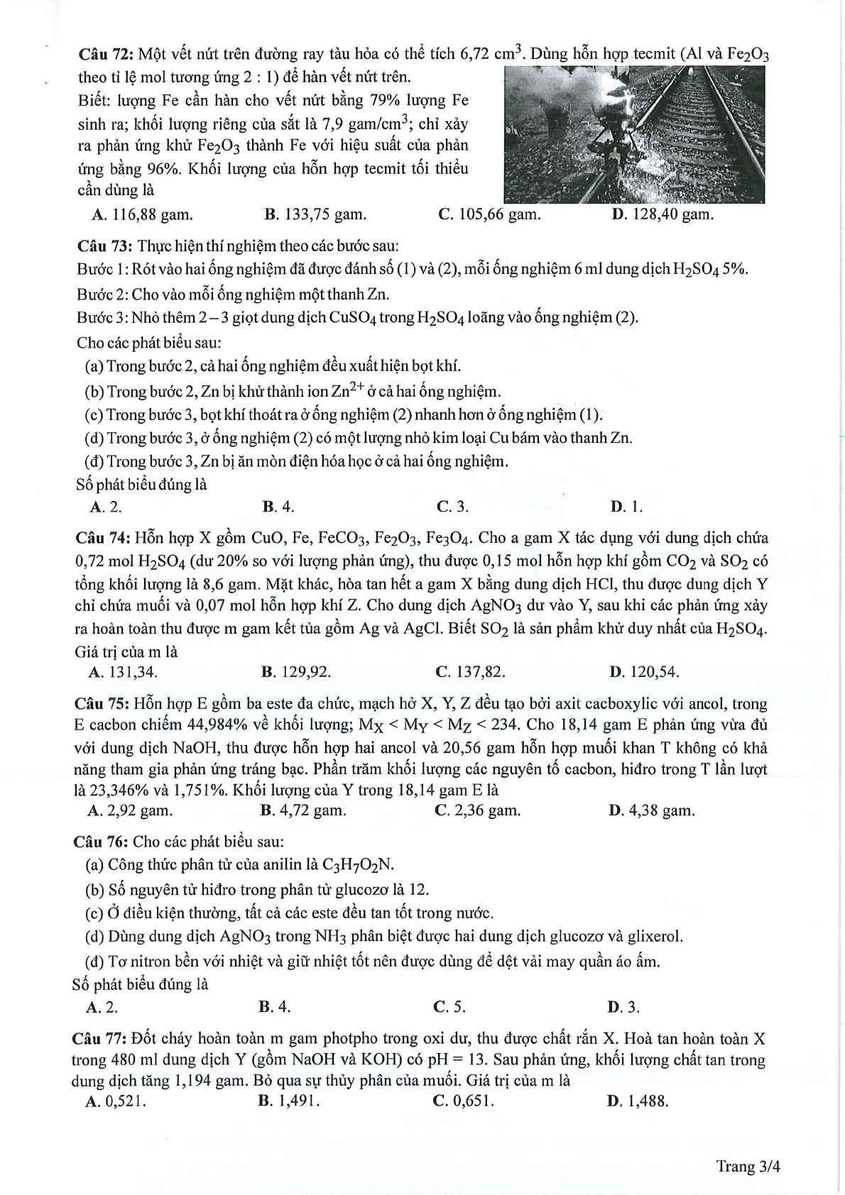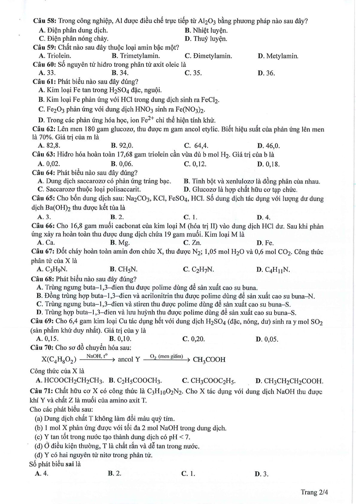 Đáp án đề minh họa 2024 môn Hóa học