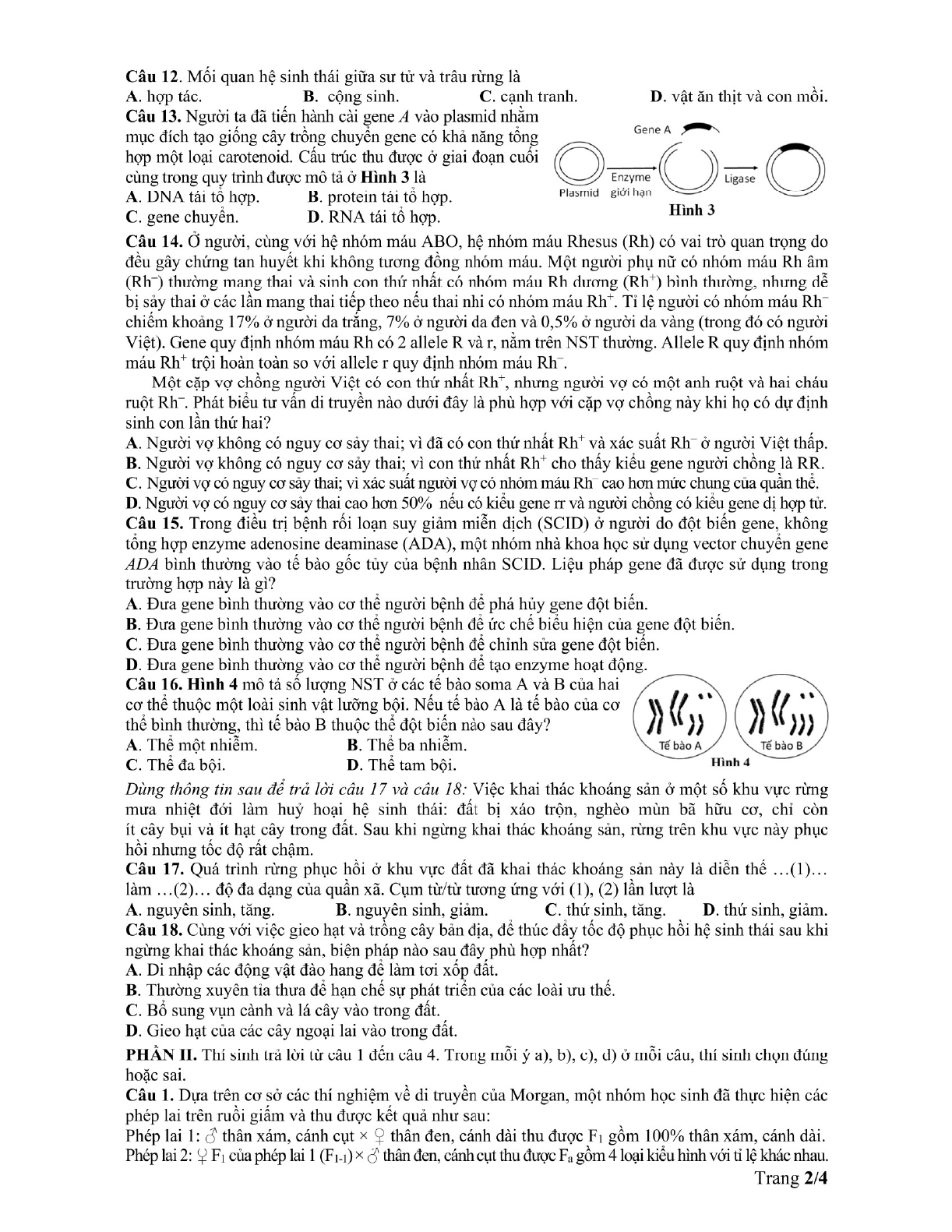 VnDoc.com xin gửi tới bạn đọc Đáp án đề minh họa 2025 môn Sinh học để bạn đọc cùng tham khảo và có thêm tài liệu ôn thi THPT Quốc gia 2025. Đề thi gồm có 18 câu hỏi chọn đáp án đúng, 4 câu hỏi đúng sai và 6 câu hỏi trả lời ngắn. Thí sinh làm bài trong thời gian 50 phút. Mời các bạn cùng theo dõi đáp án và đề thi dưới đây nhé.