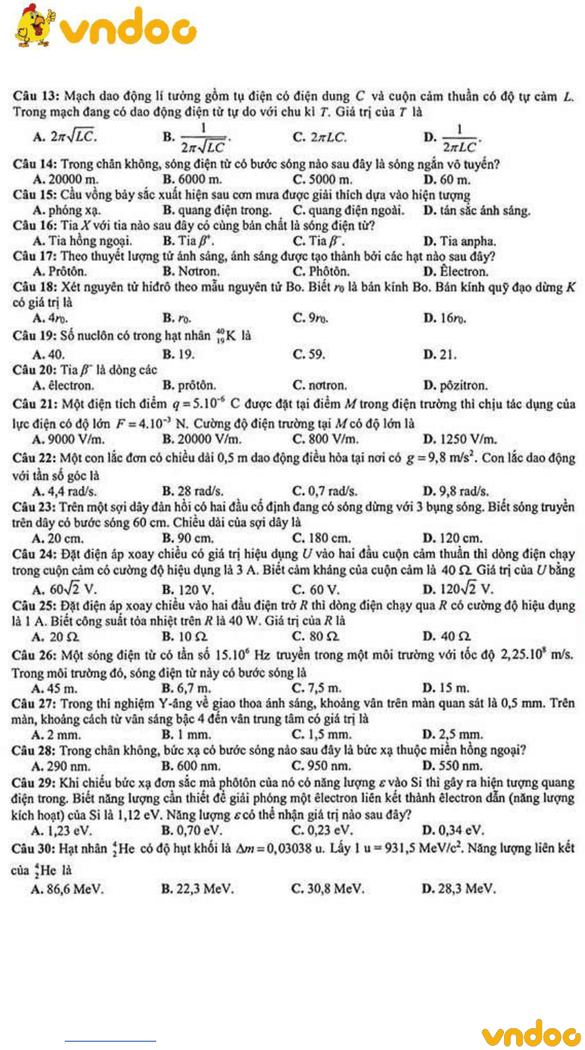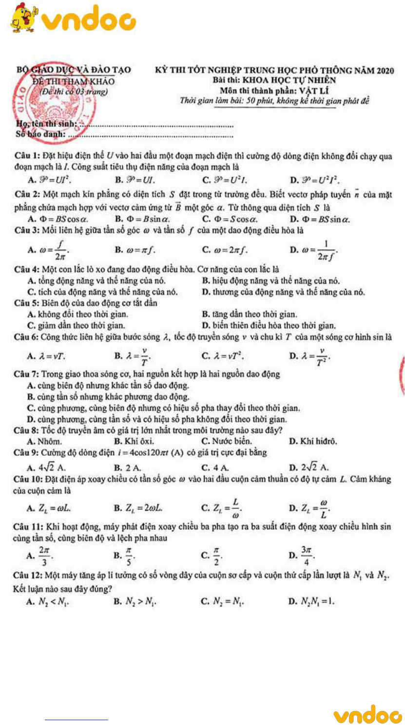Đáp án và Đề thi THPT Quốc Gia 2020 môn Vật lý sẽ được cập nhật tại Đáp án Đề thi THPT Quốc Gia 2020 môn Vật lý mới các bạn cùng theo dõi.