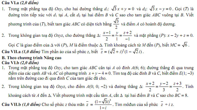 I. PHẦN CHUNG CHO TẤT CẢ THÍ SINH (7,0 điểm)