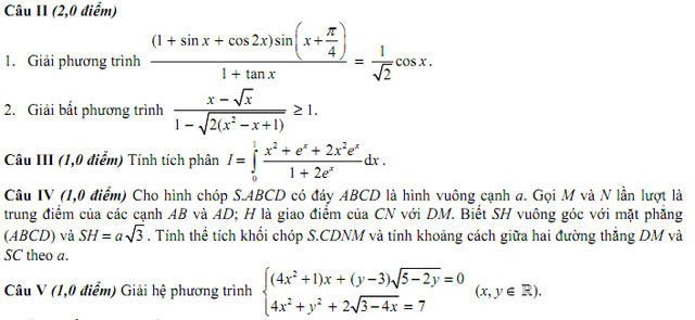ĐỀ THI ĐẠI HỌC MÔN TOÁN KHỐI A NĂM 2010