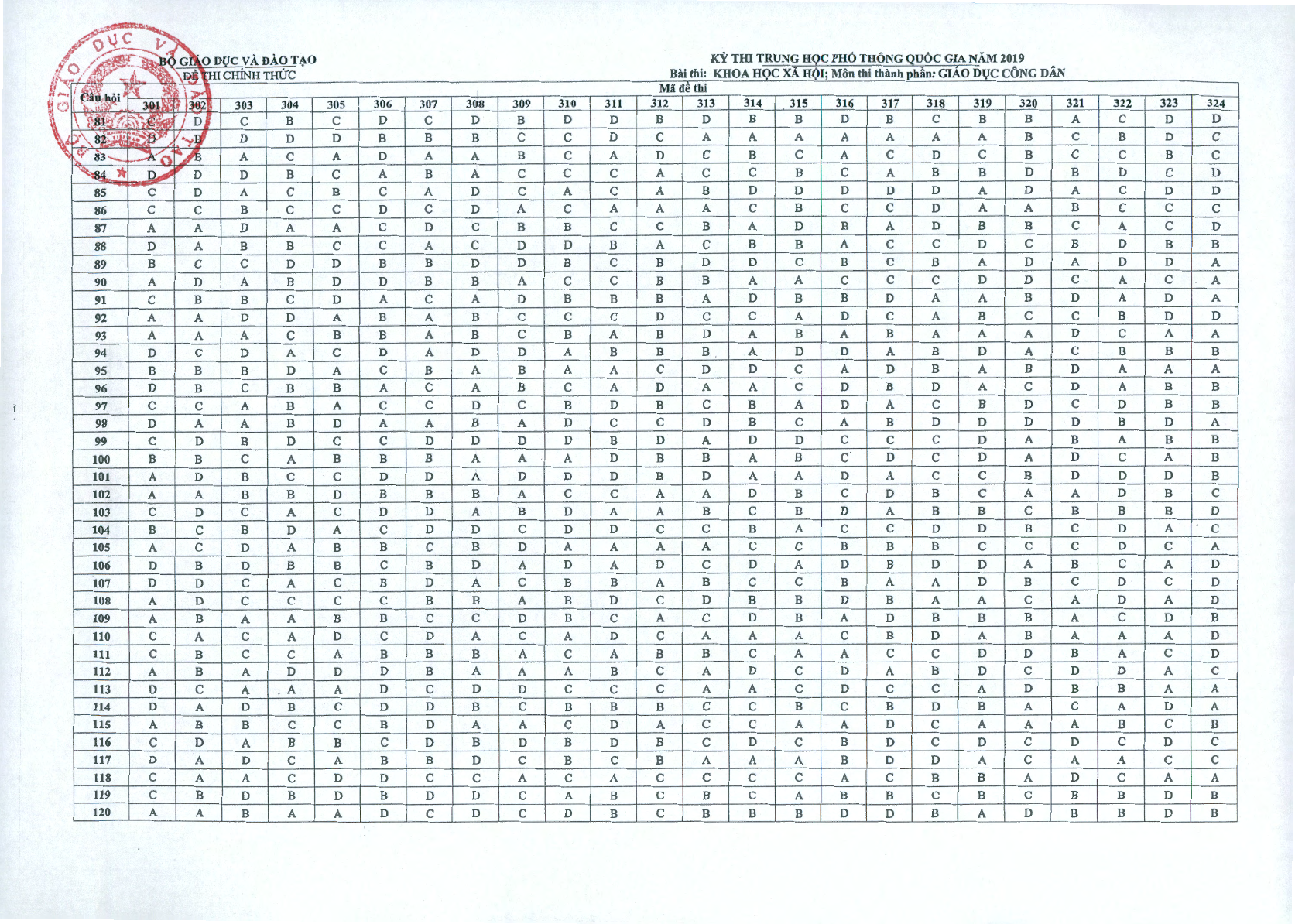 Ngày 01/7/2019, bộ Giáo dục và Đào tạo chính thức công bố đáp án 24 mã đề thi trắc nghiệm bài thi THPT Quốc Gia môn GDCD năm 2019. Mời các em tham khảo, so sánh đối chiếu với bài làm chính xác!