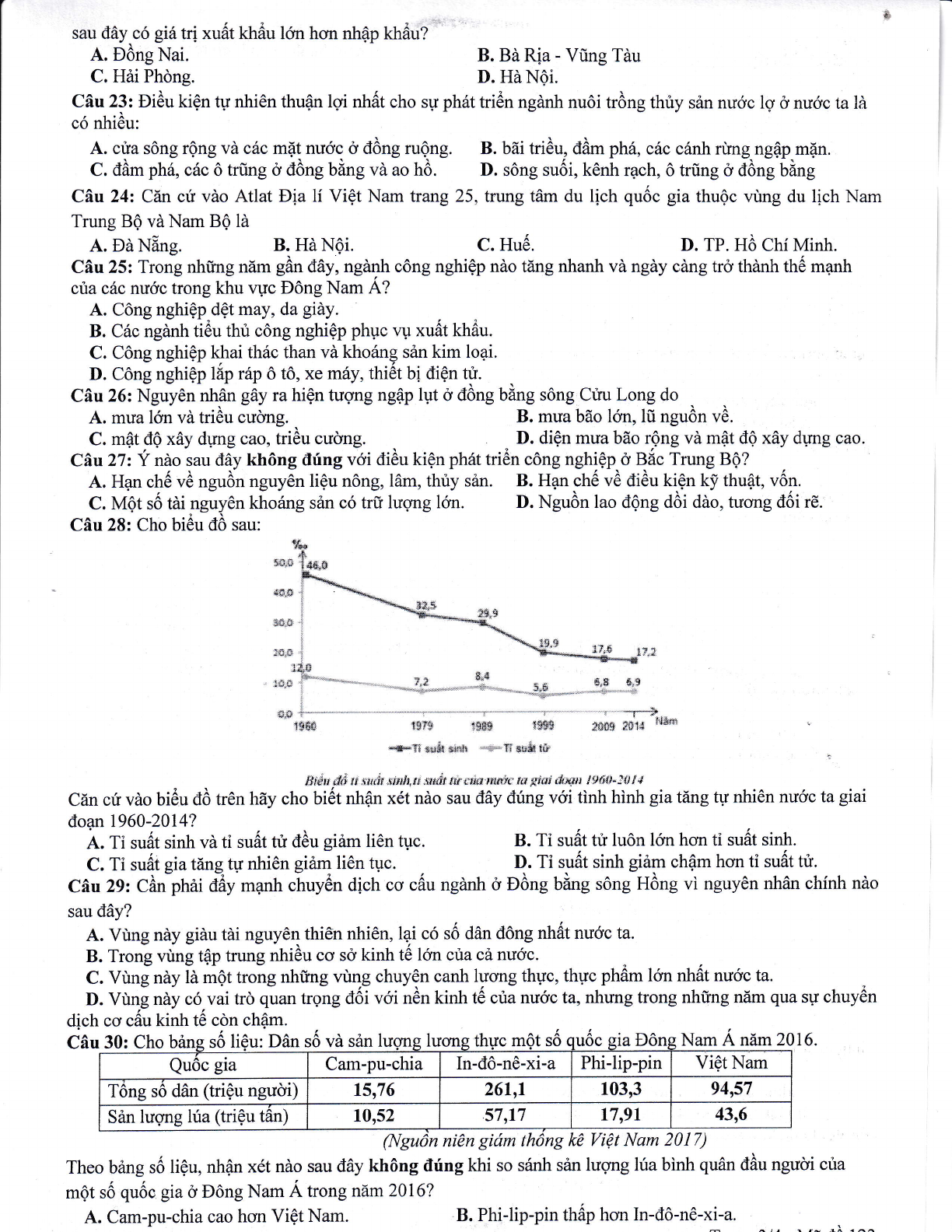 - Đề thi thử THPT Quốc gia môn Địa lý năm 2019 trường THPT Yên Lạc 2 - Vĩnh Phúc lần 3