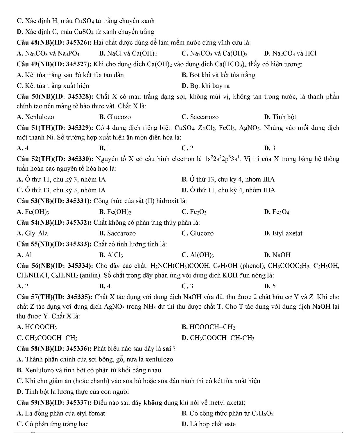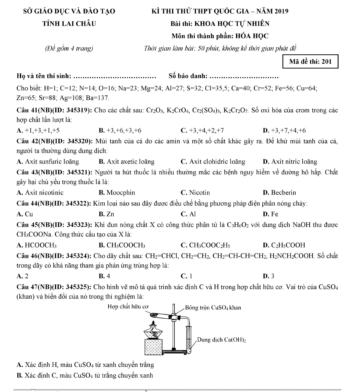Đề thi thử năm 2019 môn Hóa học