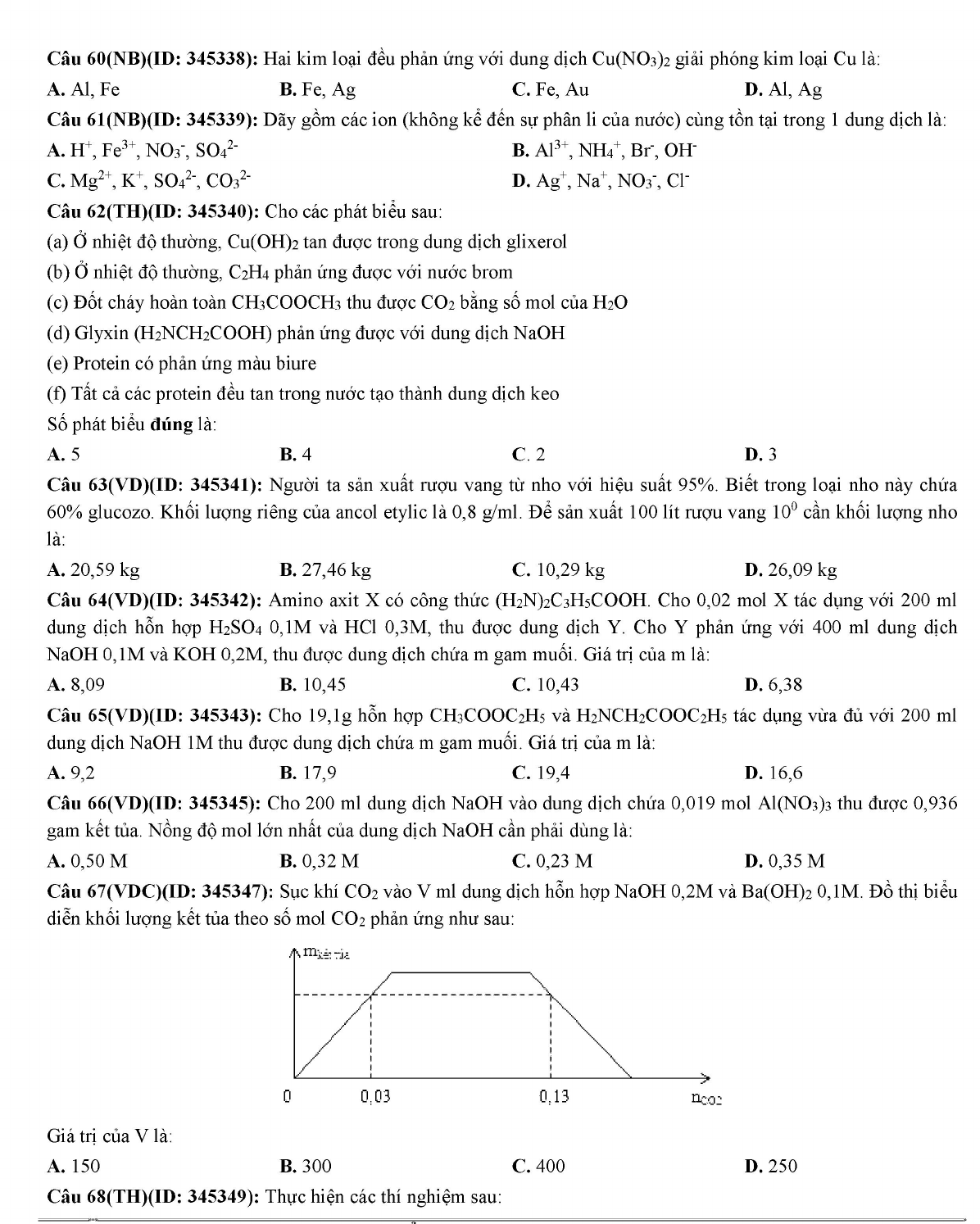 - Đáp án đề thi thử THPT Quốc gia môn Hóa học năm 2019 trường THPT Chuyên ĐH Vinh lần 2