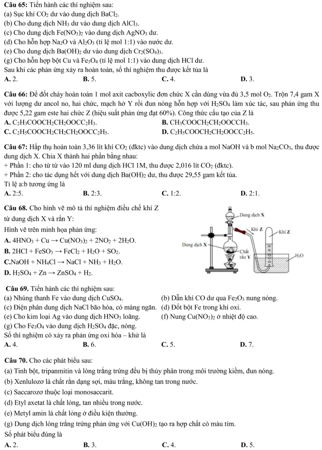Đáp án đề thi thử THPT Quốc gia môn Hóa học năm 2019 Sở GD&ĐT Thanh Hóa