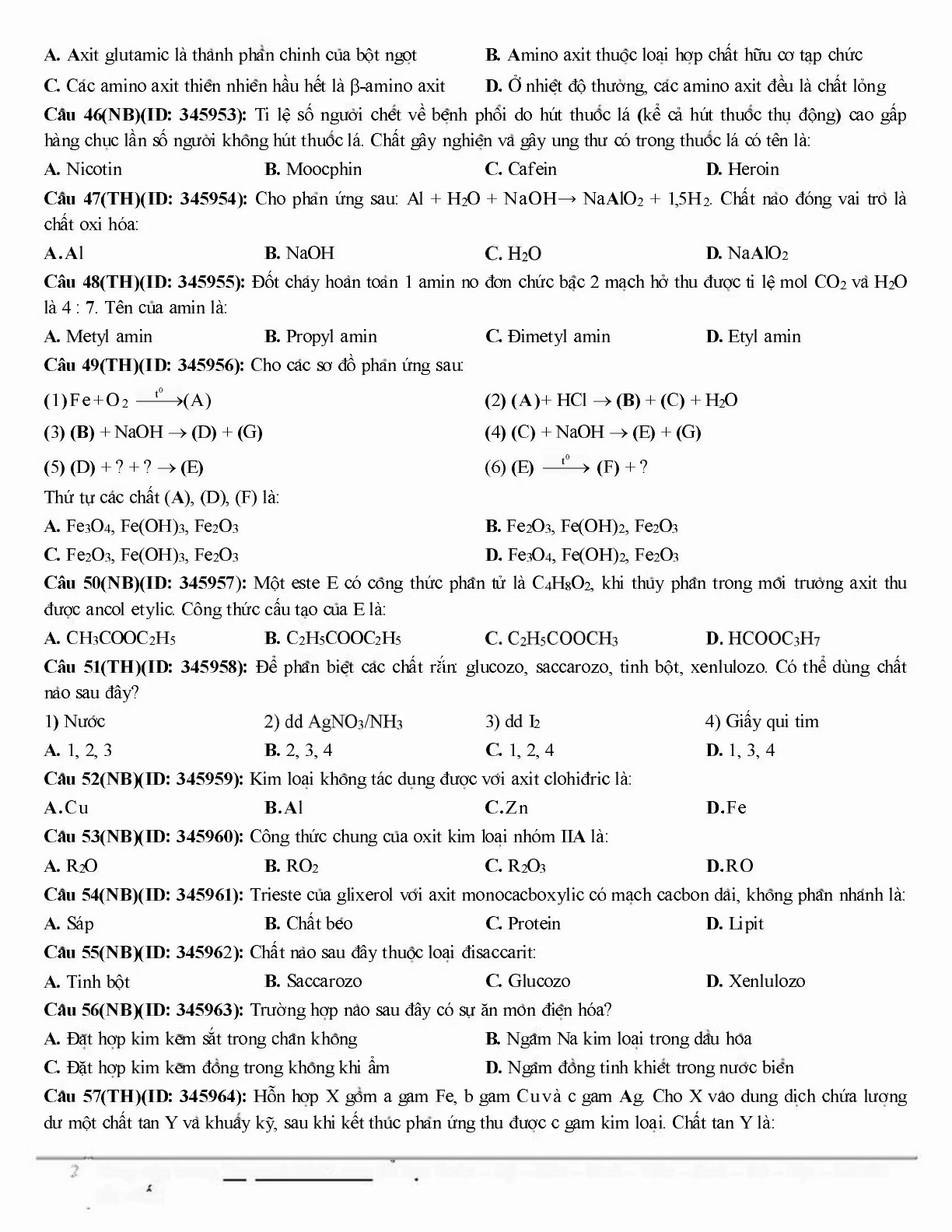 - Đáp án đề thi thử THPT Quốc gia môn Hóa học năm 2019 trường THPT Chuyên Thái Bình lần 3