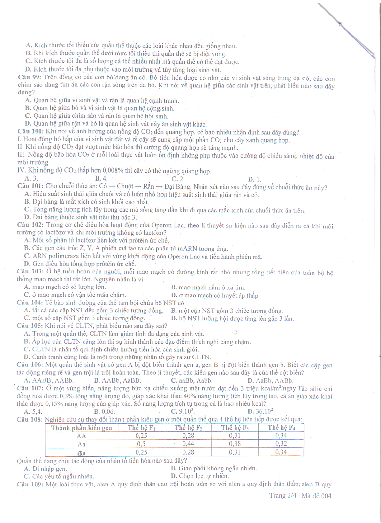 - Đáp án đề thi thử THPT Quốc gia môn Sinh học năm 2019 trường THPT TH Cao Nguyên - Đắk Lắk lần 3