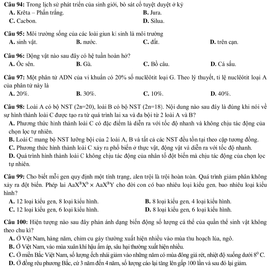 Trên đây VnDoc đã giới thiệu tới bạn đọc Đáp án đề thi thử THPT Quốc gia môn Sinh học năm 2019 Sở GD&ĐT Quảng Nam. Để có kết quả cao hơn trong học tập, VnDoc xin giới thiệu tới các bạn học sinh tài liệu Thi thpt Quốc gia môn Toán, Thi thpt Quốc gia môn Hóa học, Thi thpt Quốc gia môn Vật Lý, Thi thpt Quốc gia môn Sinh học, Soạn bài lớp 12 mà VnDoc tổng hợp và đăng tải.
