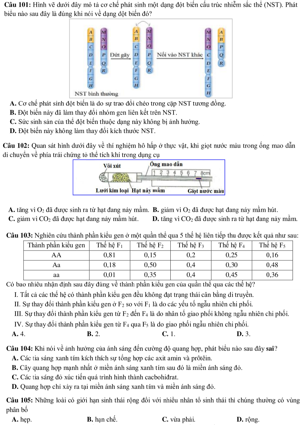 Đáp án đề thi thử THPT Quốc gia môn Sinh học năm 2019 Sở GD&ĐT Quảng Nam