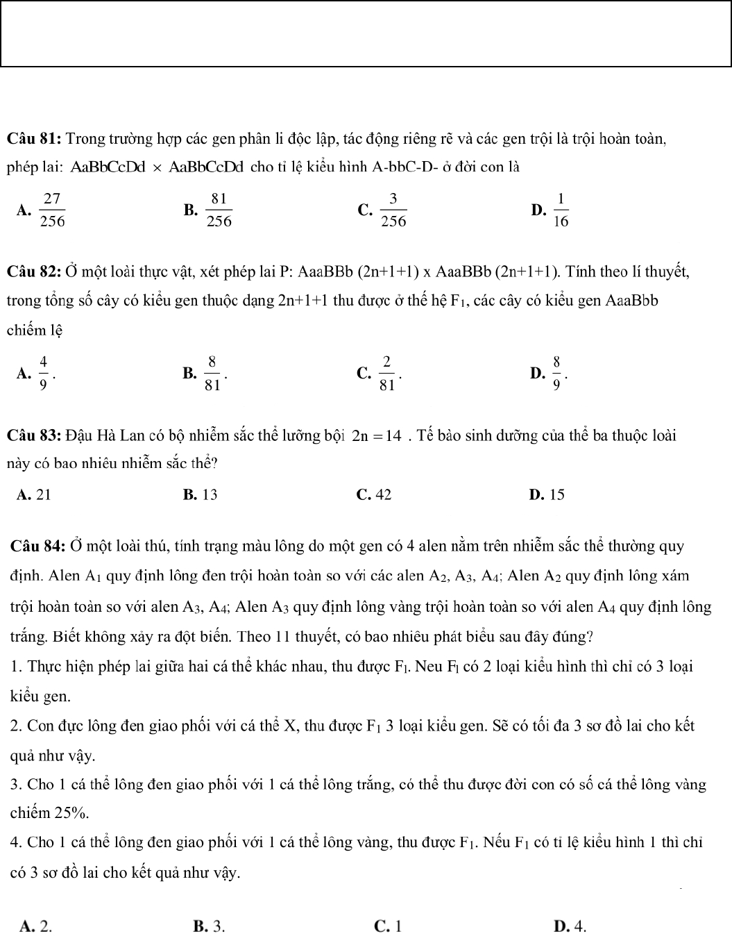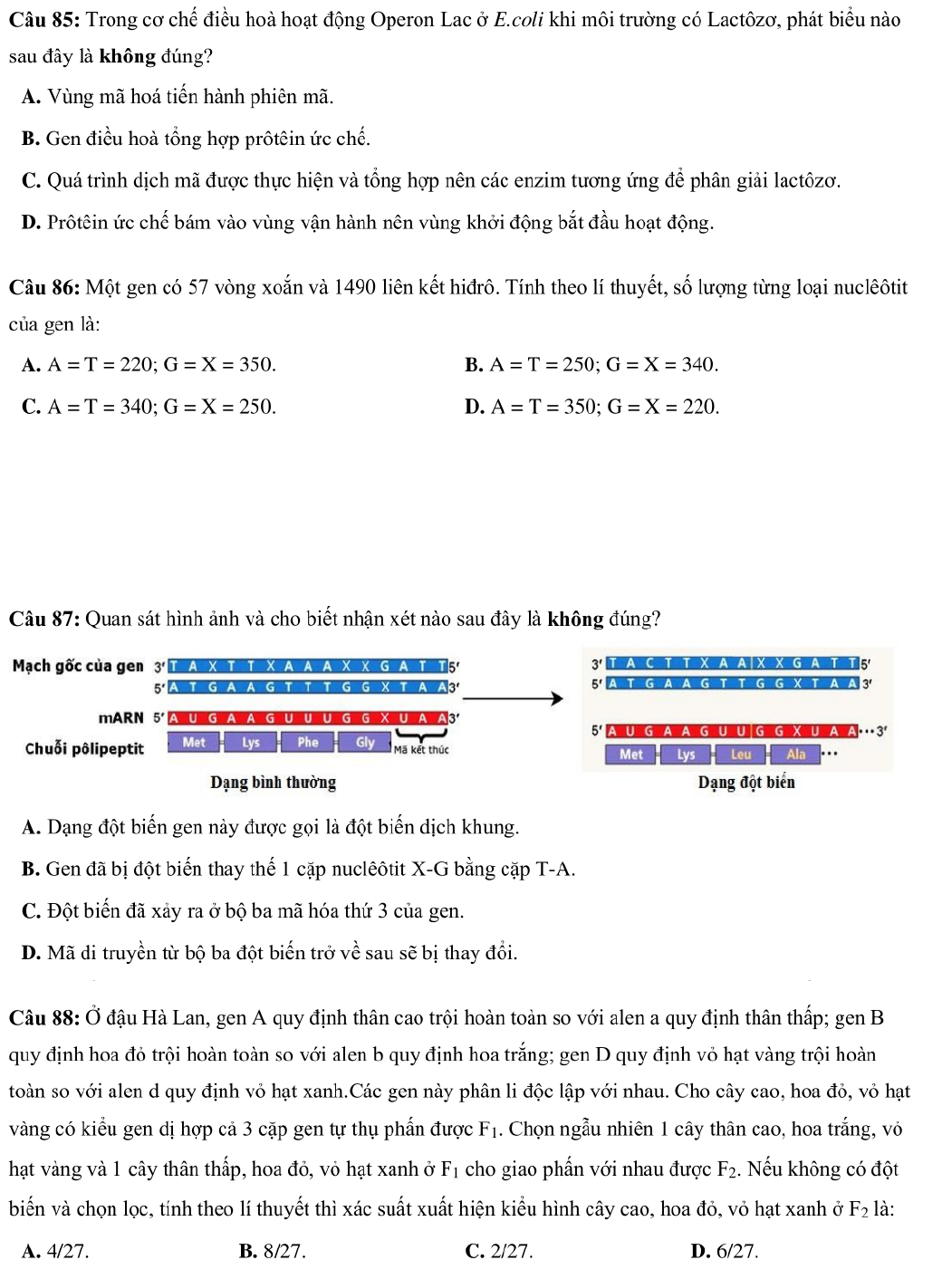 - Đáp án đề thi thử THPT Quốc gia môn Sinh học năm 2019 trường THPT TH Cao Nguyên - Đắk Lắk lần 3