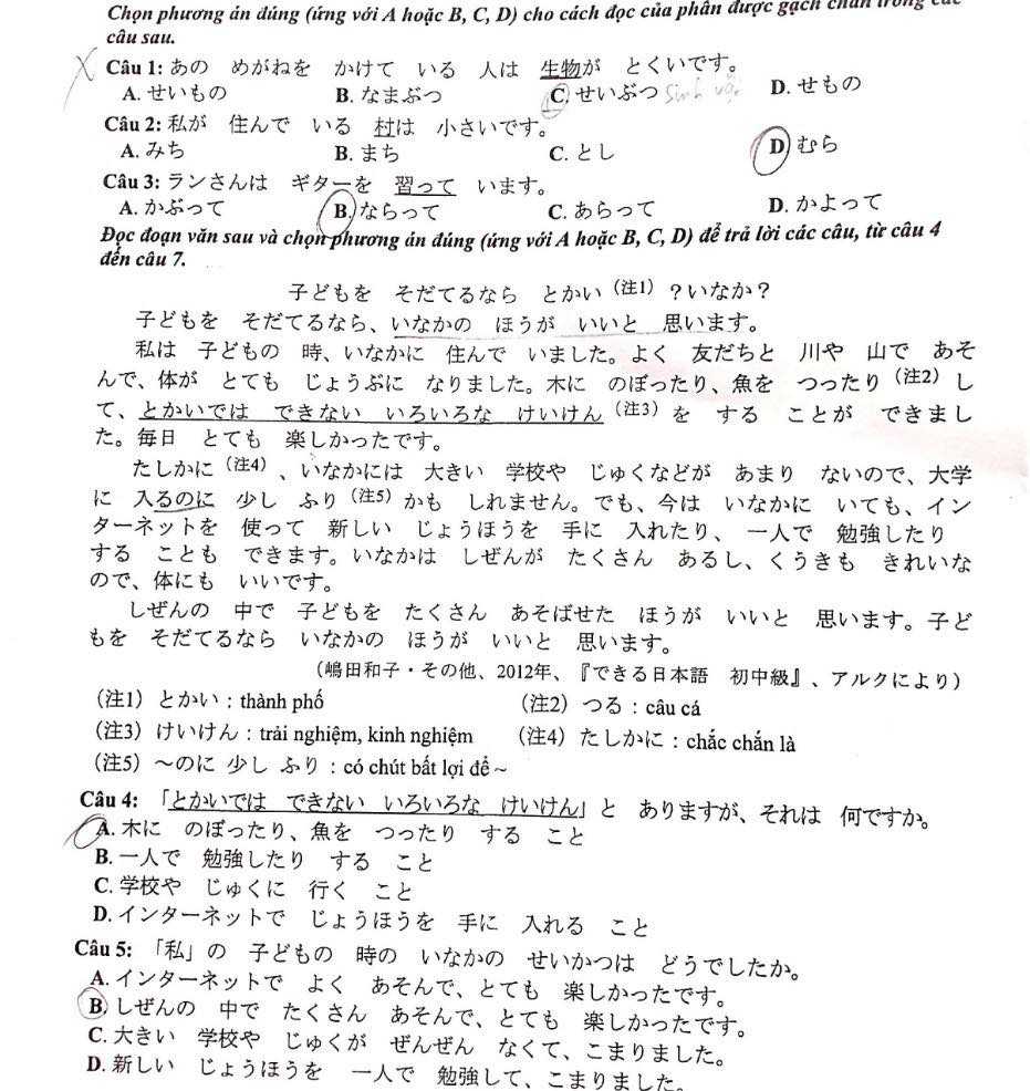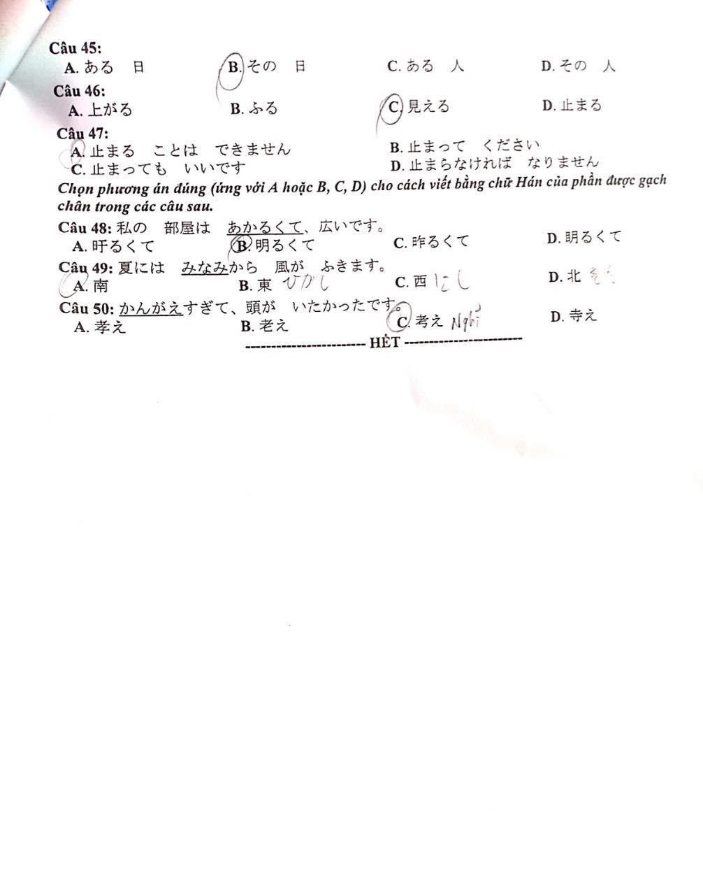 Các em học sinh chụp & gửi đề thi cho VnDoc tại Fanpage: VnDoc.com để được Thầy/ Cô ban tiếng Nhật của VnDoc.com giải nhanh từng mã đề.