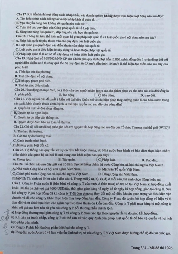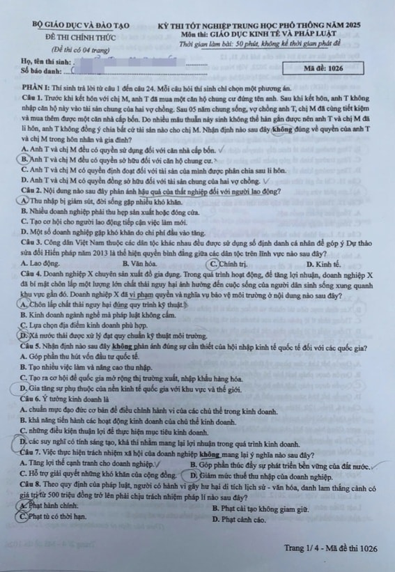 1. Đáp án đề thi tốt nghiệp THPT môn Giáo dục Kinh tế và Pháp luật 2025