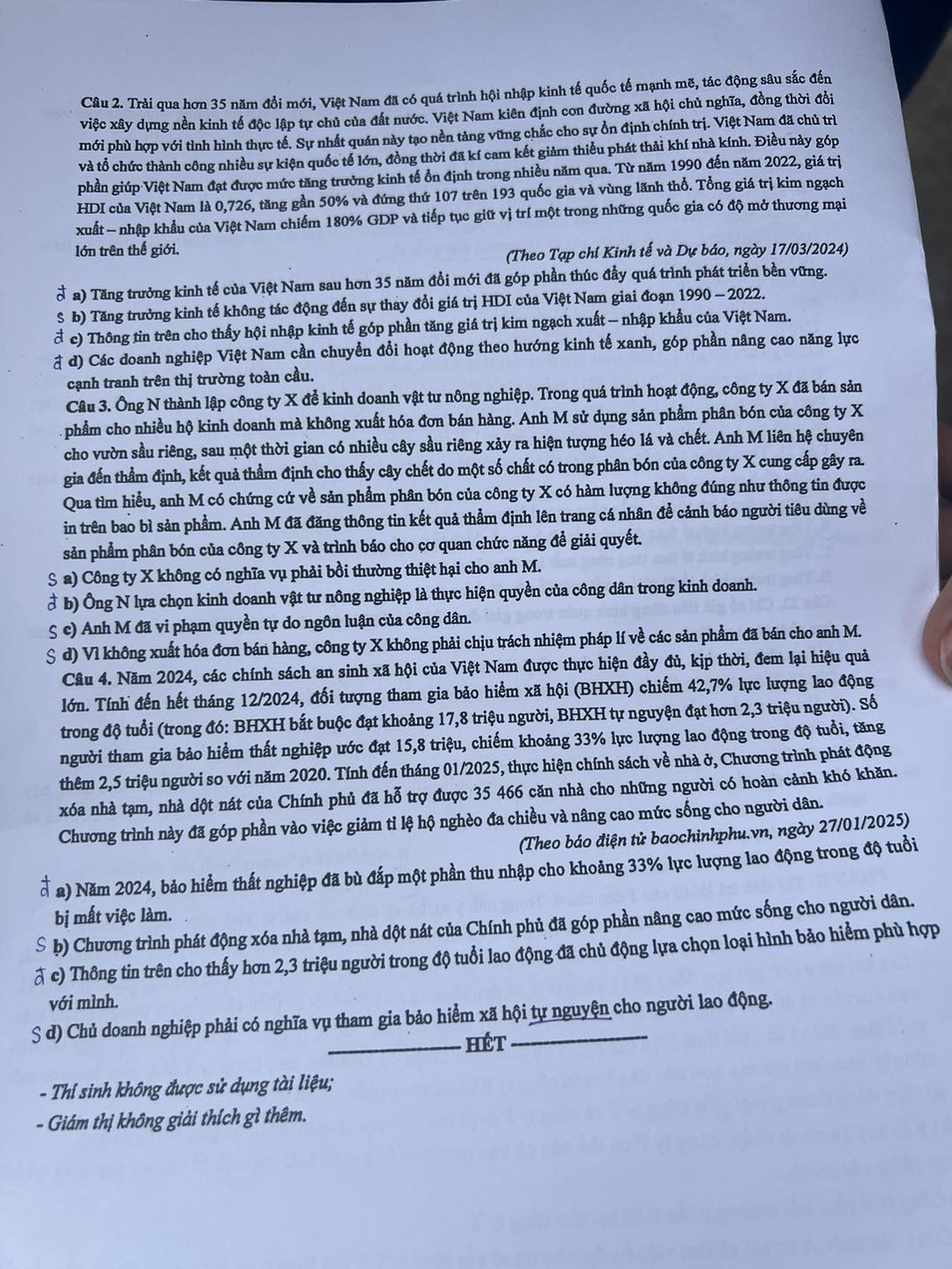 2. Đề thi tốt nghiệp THPT môn Giáo dục Kinh tế và Pháp luật 2025