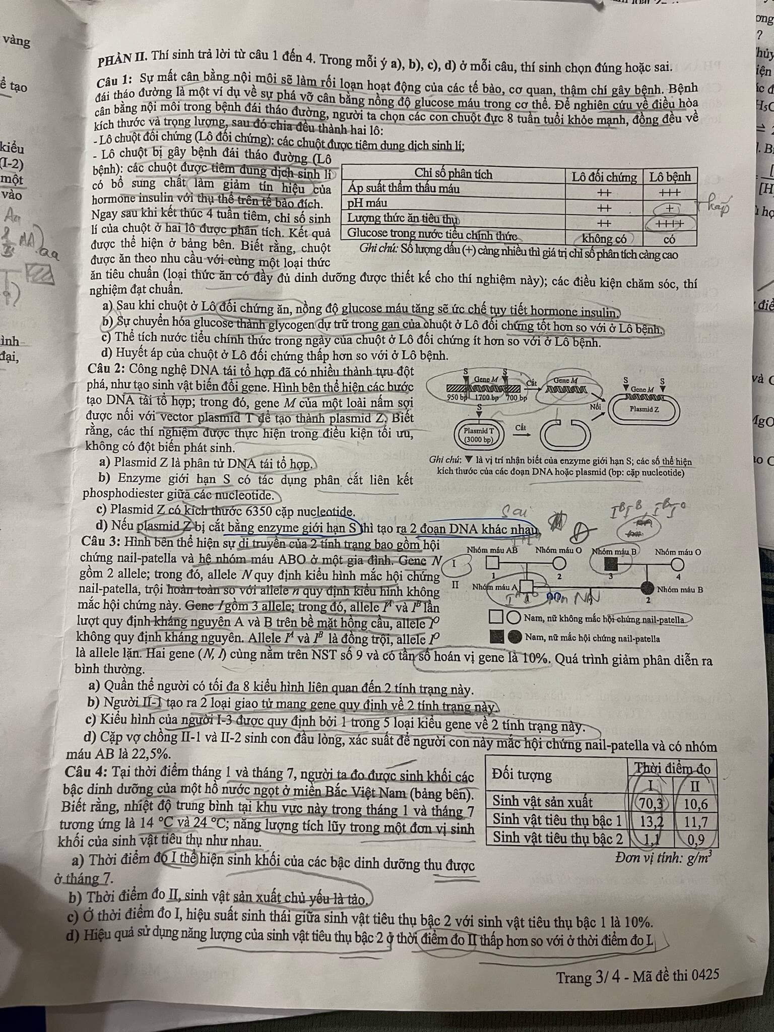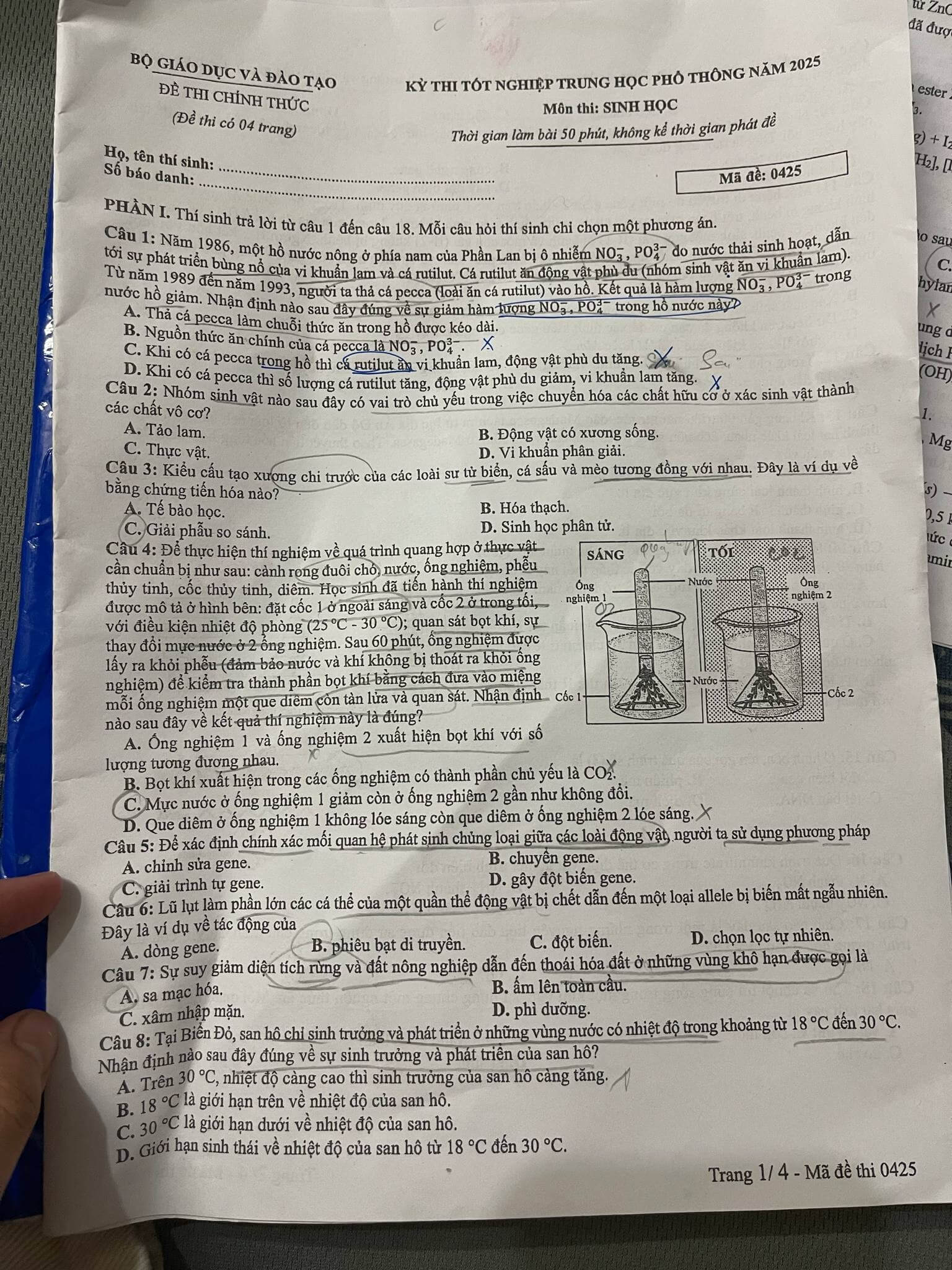 1. Đáp án đề thi tốt nghiệp THPT môn Sinh 2025