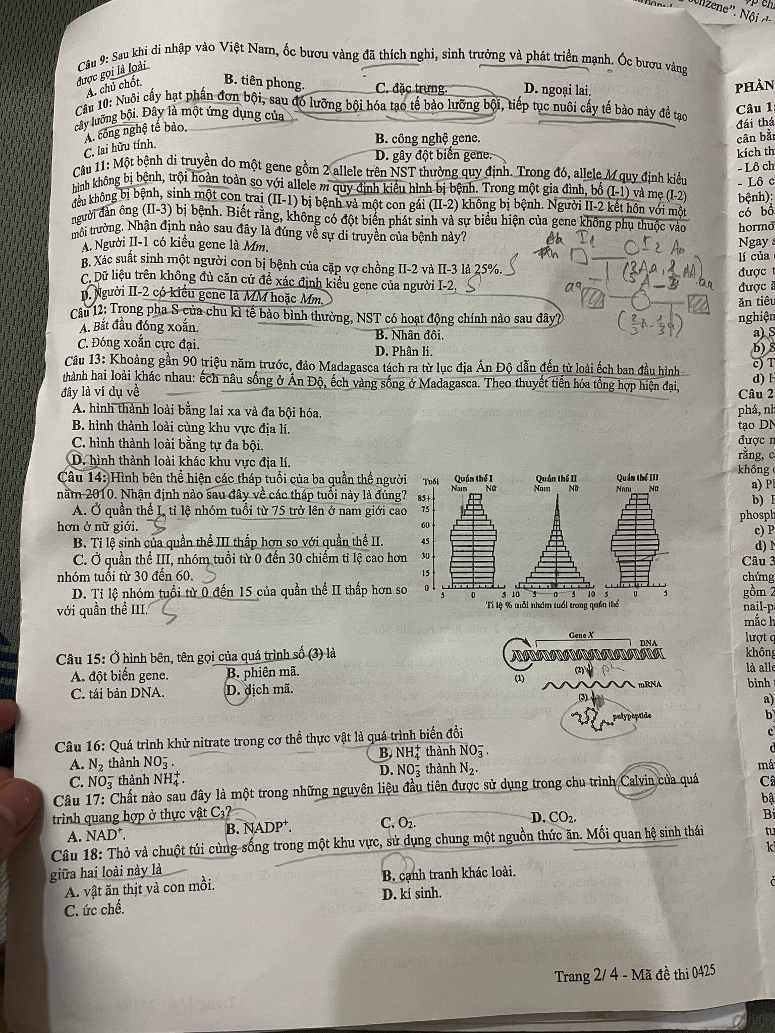 Đáp án Sinh THPT Quốc gia 2025