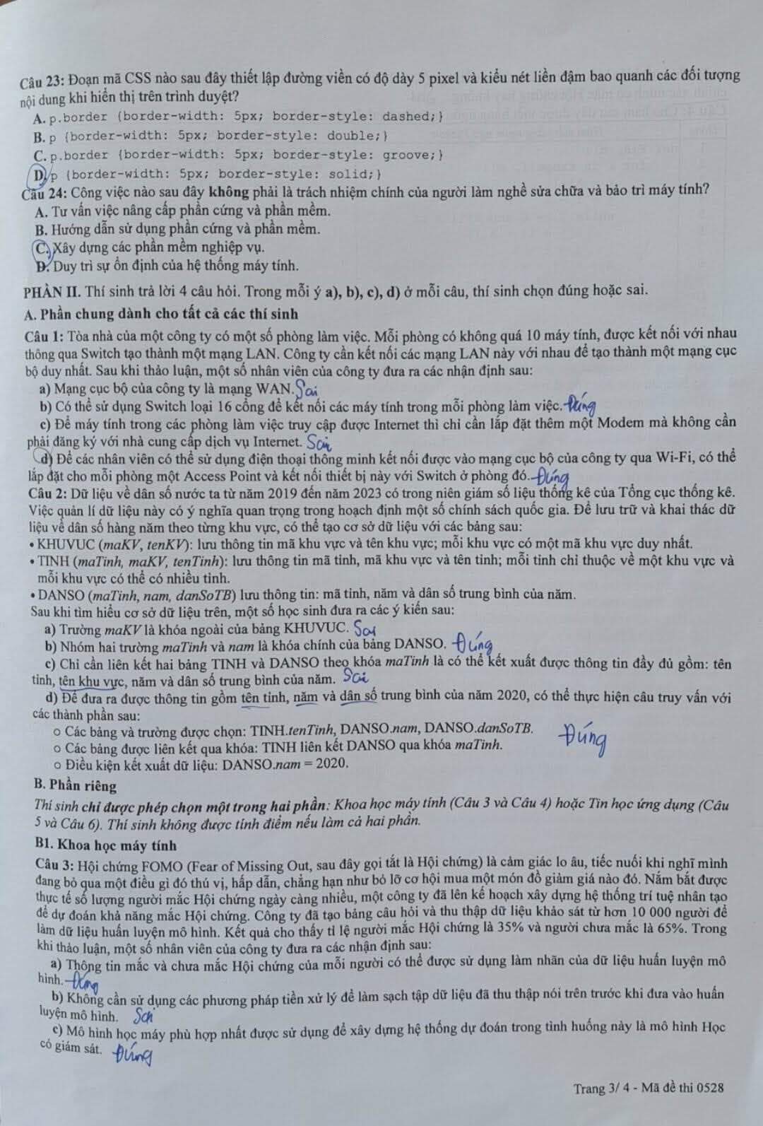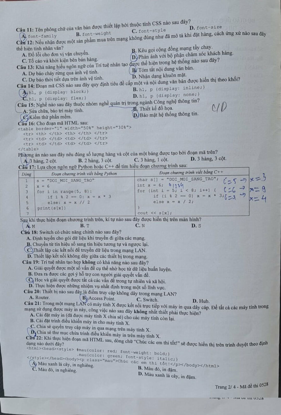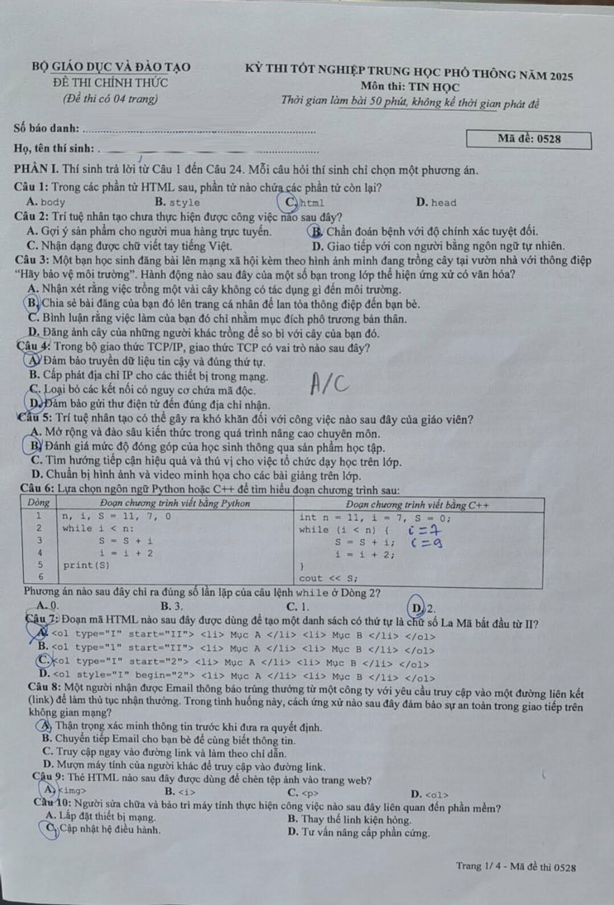 Đáp án đề thi tốt nghiệp THPT Quốc gia 2025 môn Tin học
