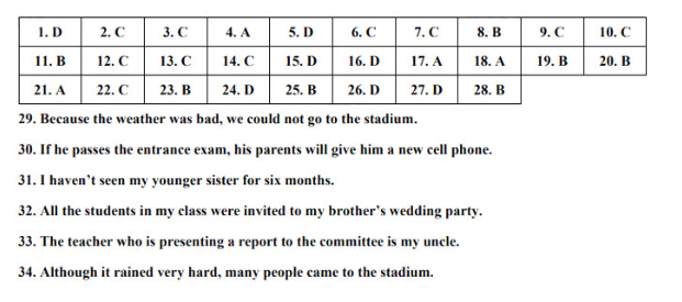 Đáp án đề thi tuyển sinh lớp 10 môn Anh tỉnh An Giang năm 2022