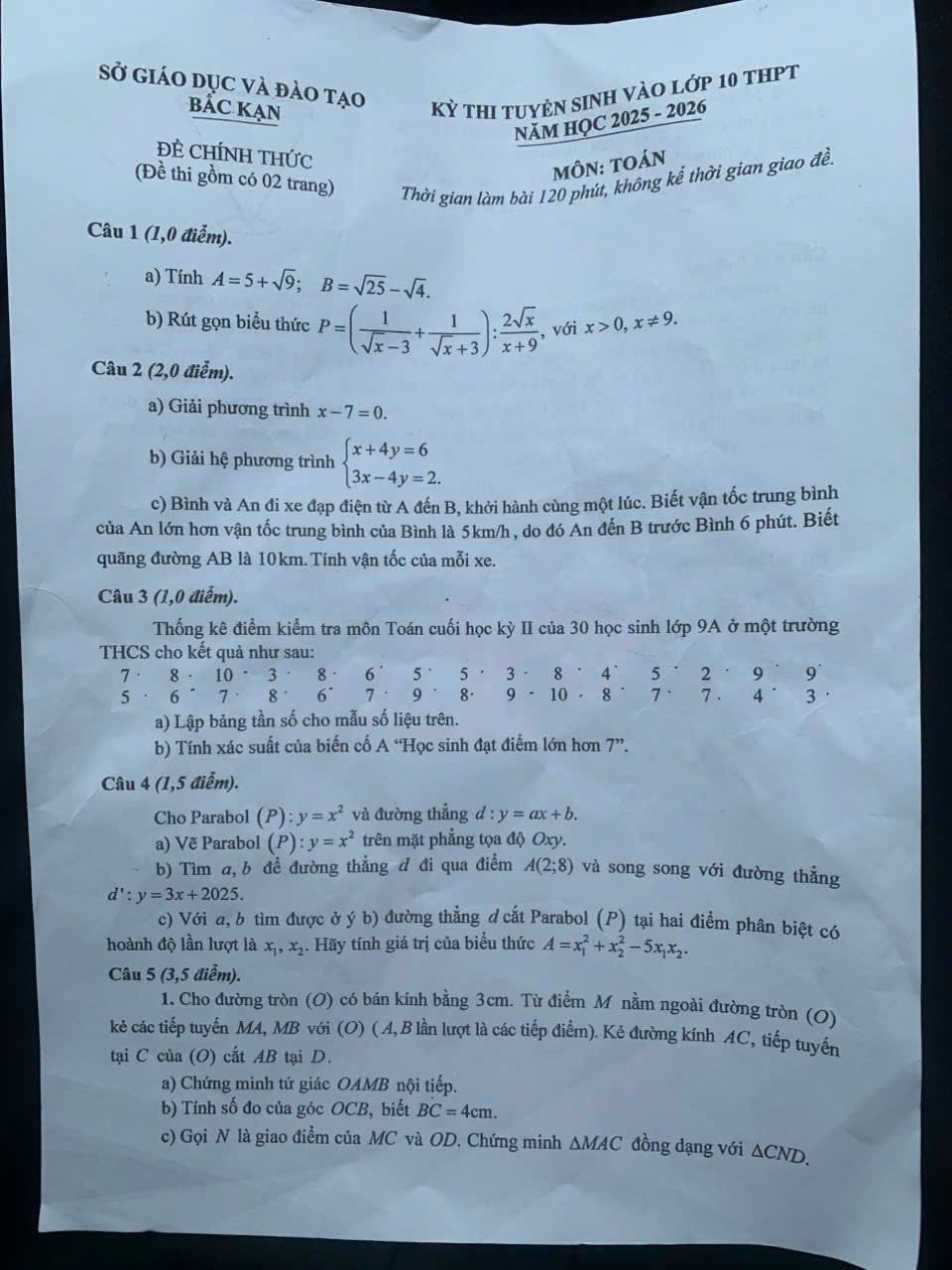 2. Đề vào 10 Toán Bắc Kạn 2025