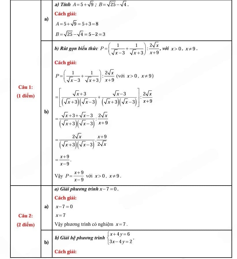 1. Đáp án đề vào 10 Toán Bắc Kạn 2025