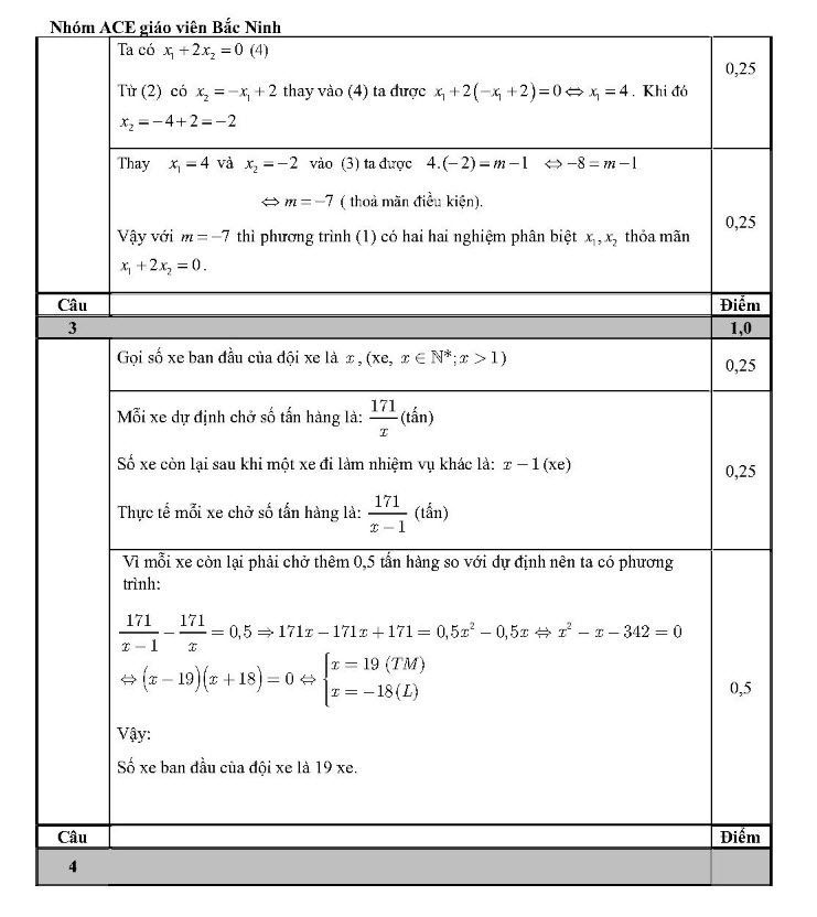 3. Đáp án đề thi vào 10 môn Toán Bắc Ninh 2024