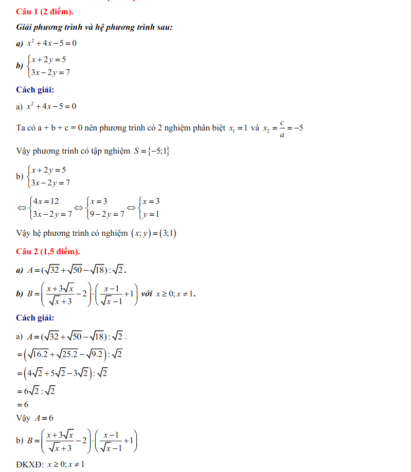 1. Đáp án đề thi vào lớp 10 môn Toán Bình Thuận 2024
