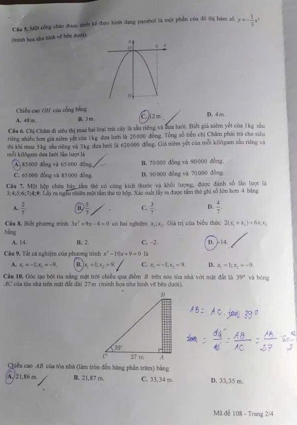 4. Đề thi vào 10 môn Toán Cần Thơ 2024